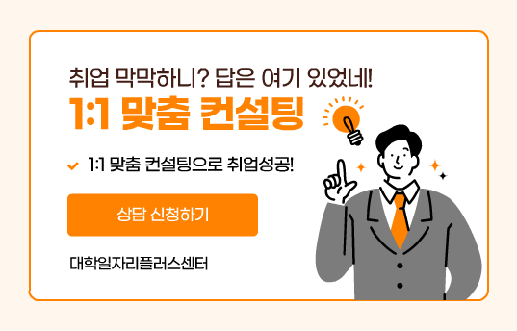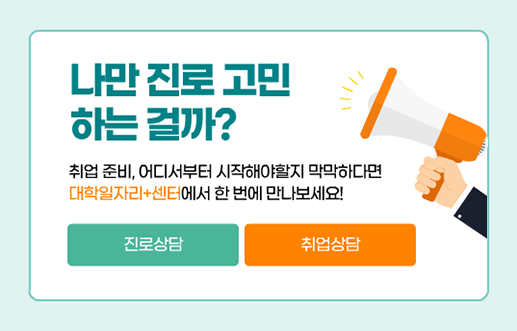 • 메뉴 이동: 상단 메뉴에서 진로/취업을 클릭한 뒤, 진로/취업 상담을 선택하세요.